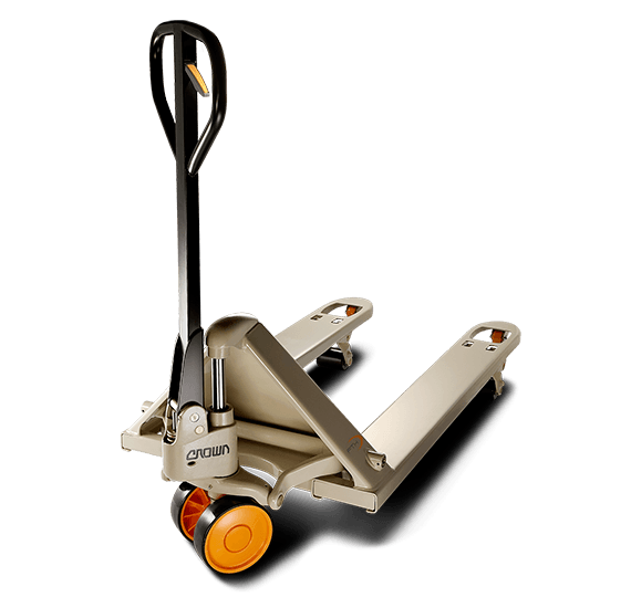 Para incrementar su durabilidad, la transpaleta consta de timón reforzado, resistentes horquillas hechas de gruesos perfiles de acero en C, refuerzos transversales y acero forjado en el cuerpo de la bomba y brazos de elevación, así como empujadores de perfil cuadrado.